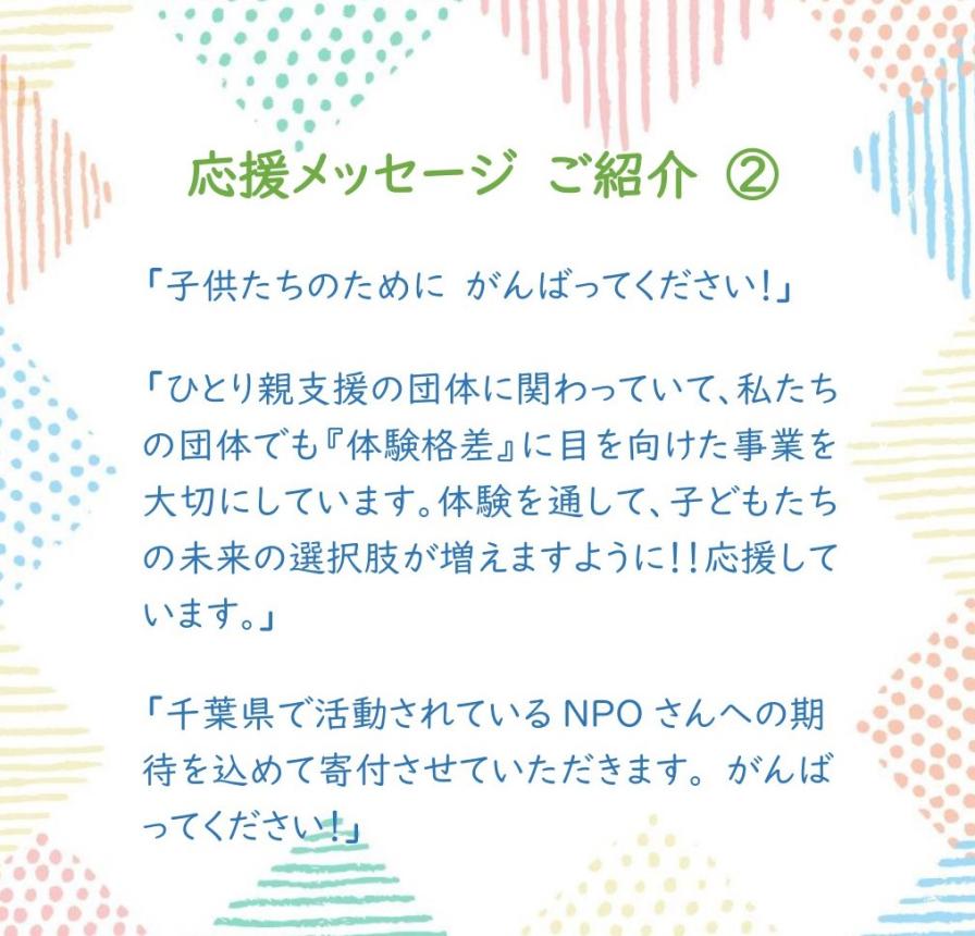 助成先となるNPOさんへの期待を込められたメッセージもありがとうございます。ご寄付とその想い、責任を持ってしっかり団体さんに届けます!