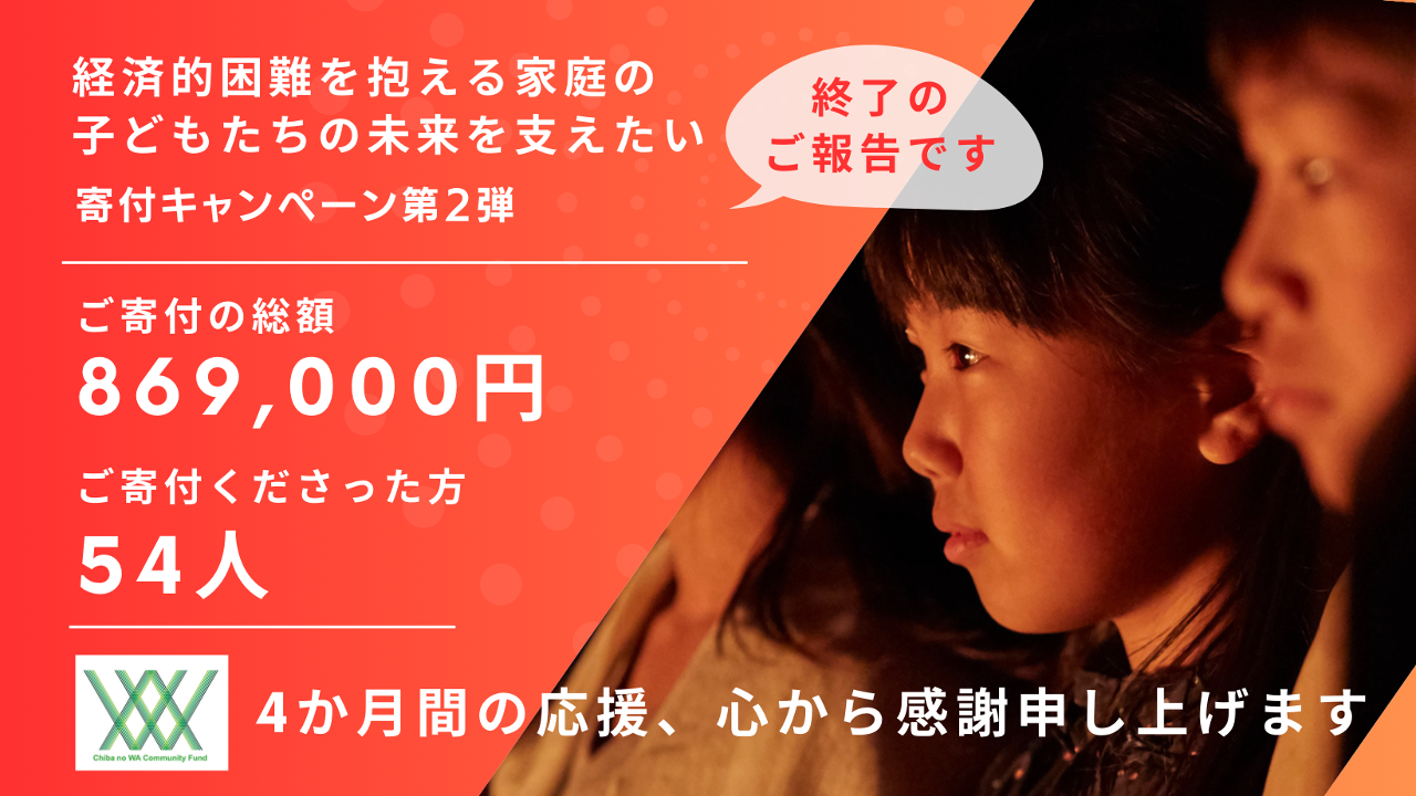 昨年12月から行ってきた「経済的困難を抱える家庭の子どもたちの未来を支えたい」第2回寄付キャンペーンが3月31日に終了しました。