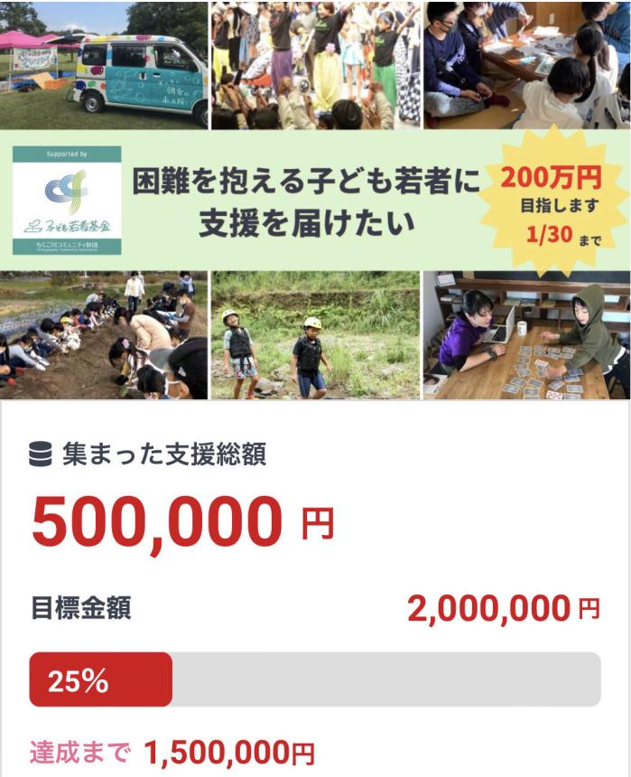 2023-01-06 13:45祝!ノミネート【残り24日達成まで1,297,000円】本年も応援よろしくお願いします。子ども若者基金の活用団体さんに関する嬉しいニュースです!2023-01-06 13:45祝!ノミネート【残り24日達成まで1,297,000円】本年も応援よろしくお願いします。子ども若者基金の活用団体さんに関する嬉しいニュースです!