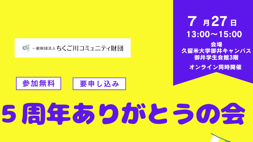 さて、7月27日にちくご川コミュニティ財団の5周年記念イベントを開催します。