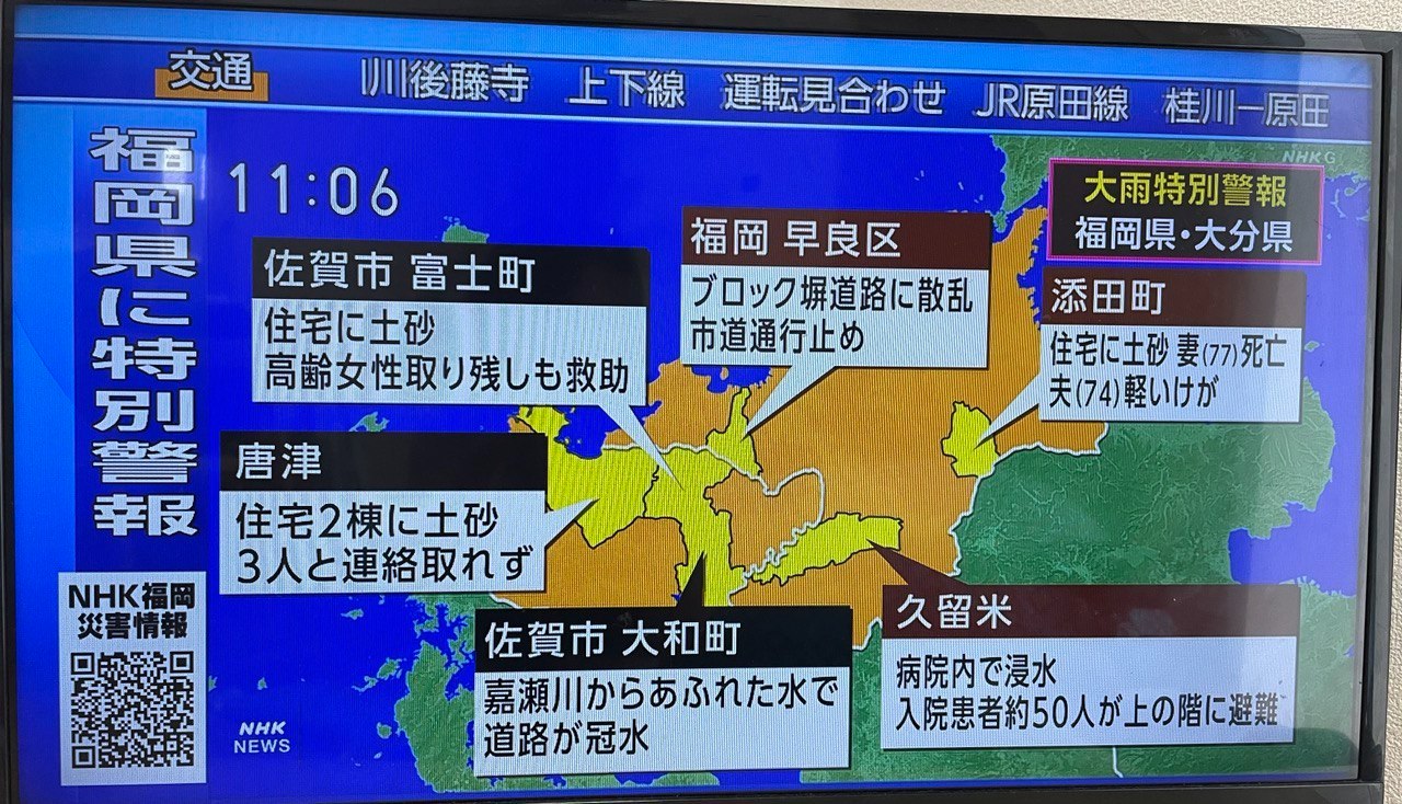 線状降水帯が発生した福岡、大分、佐賀各県では河川の氾濫や道路の冠水、住宅への浸水、土砂崩れなどが相次ぎ、人的被害も出ています。