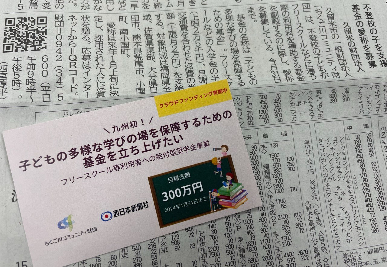 12月16日の西日本新聞福岡県版で、多様な学び基金の愛称募集について取り上げていただきました。