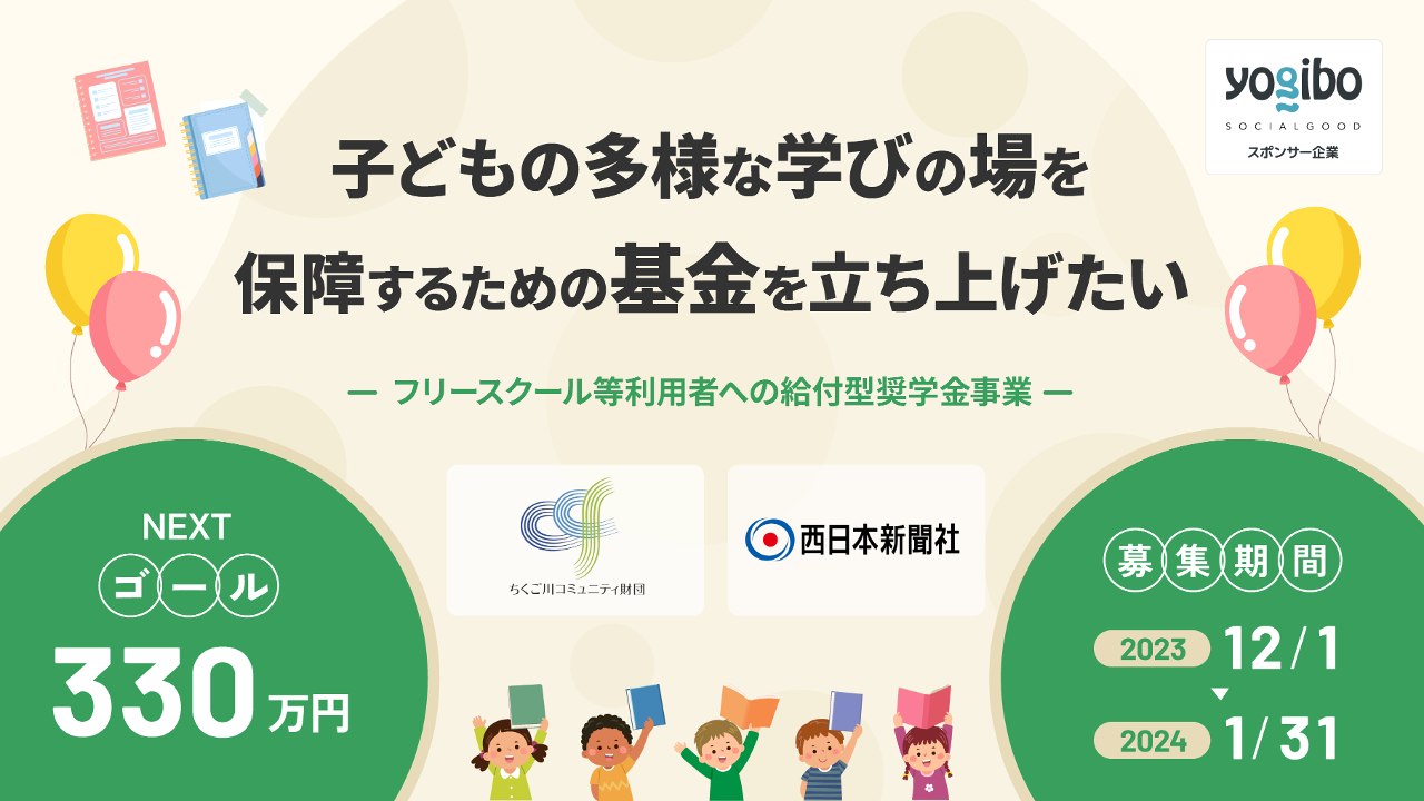 そこで、一般財団法人ちくご川コミュニティ財団は、筑後川関係地域で多様な学びの場を保障することを目指して基金を立ち上げ、フリースクール等利用者の子どもを対象とした給付型奨学金事業を運営します。