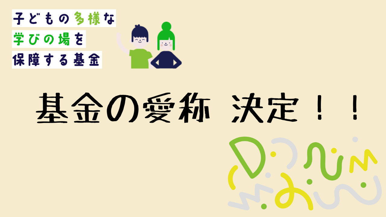 さて、募集していた「子どもの多様な学びの場を保障するための基金」の愛称は12月31日に公募を締め切り、たくさんのご応募の中から審査委員会の選考を経て素敵なネーミングに決定いたしました!!