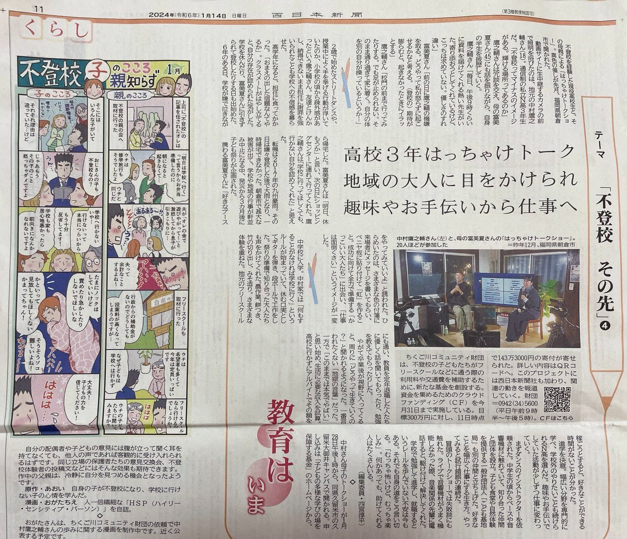 教育という観点から多彩なテーマの記事が魅力で、不登校に関する記事もあり、この多様な学び基金についても何度も取り上げられています。