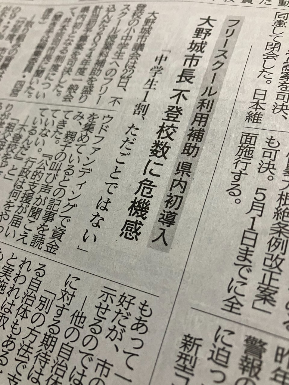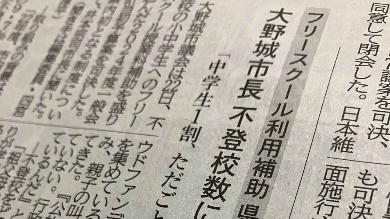 私はその後、福岡県大野城市が県内で初めて、フリースクールに通う市内の小中学生に授業料の補助をするという記事を書きました(3月23日付西日本新聞福岡県版)。月1万円を上限に授業料や施設利用料の2分の1を補助する取り組みで、2024年度から実施されることになりました。