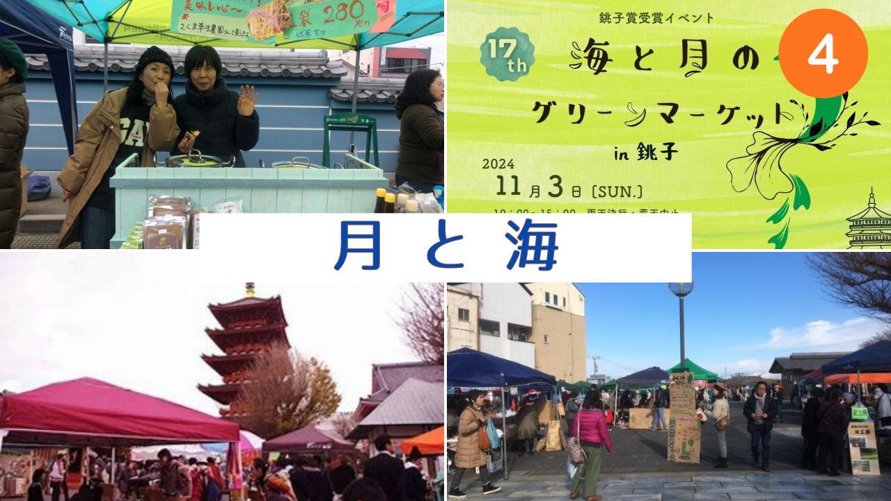 銚子ではじめてのオーガニックマーケット「海と月のグリーンマーケットin銚子」をスタートして以来、たくさんの皆様にお力添えをいただき、市内外にファンが広がっていることを実感しています。いつも本当にありがとうございます。今年度は歩みを進め、マーケットを通して伝えたいことを広く呼びかけていきたいと思っています。ここ、銚子から、「食」の大切さを伝えたい。月と海の新しいステージをどうぞ引き続き応援してください。