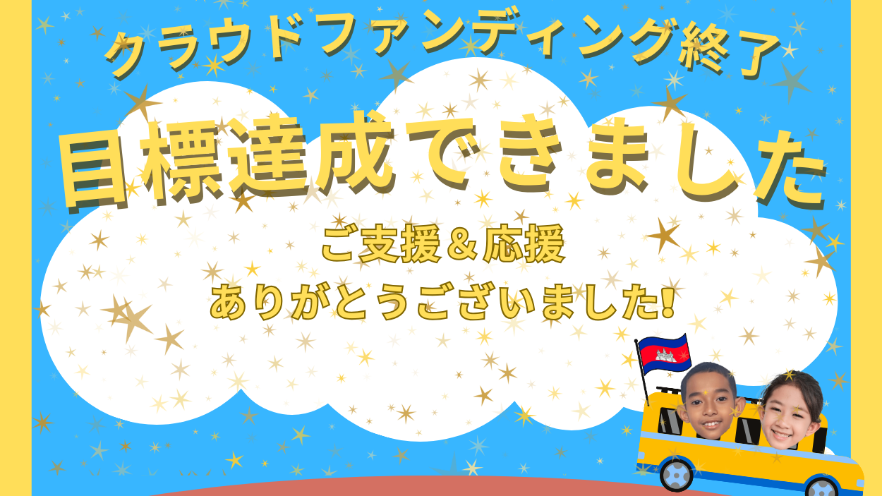 2024-12-02 16:03【クラファン達成!】皆様ご協力ありがとうございました!クラウドファンディング「カンボジアの子どもたちの日本留学‼ を応援するスクールバス購入」にご支援を賜り、誠にありがとうございました。 皆様のお力添えのおかげで、プロジェクトは無事に目標を達成し、必要な資金を集めることができました。 この成功は、皆様一人ひとりの温かいご支援によるものです。子どもたちやスタッフ一同、心より感謝申し上げます。 購入したスクールバスについては追ってCIESF公式FacebookとInstagramで発信いたしますので、是非フォローをよろしくお願いいたします!2024-12-02 16:03【クラファン達成!】皆様ご協力ありがとうございました!クラウドファンディング「カンボジアの子どもたちの日本留学‼ を応援するスクールバス購入」にご支援を賜り、誠にありがとうございました。 皆様のお力添えのおかげで、プロジェクトは無事に目標を達成し、必要な資金を集めることができました。 この成功は、皆様一人ひとりの温かいご支援によるものです。子どもたちやスタッフ一同、心より感謝申し上げます。 購入したスクールバスについては追ってCIESF公式FacebookとInstagramで発信いたしますので、是非フォローをよろしくお願いいたします!