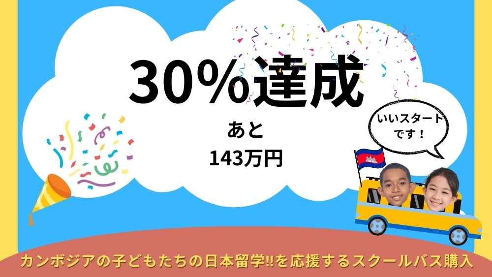 10月22日からスタートしたクラウドファンディング『カンボジアの子どもたちの日本留学‼ を応援するスクールバス購入』が開始3日目で目標金額の30%を達成しました!