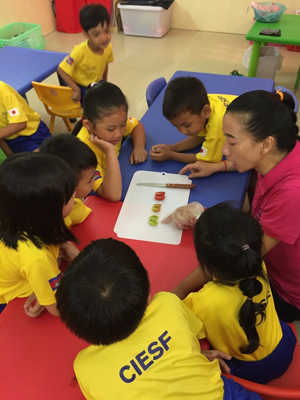 卒業後たまたま通っていた無料の日本語教室に通い、知り合いの紹介で日本大使館の外交官の方の料理を作る仕事をすることになりました。そのおかげで日本料理と日本語がとても大好きになりました。そのあとシーセフが運営していた日本語学校に通い、日本語とビジネスマナーを身につけ、さらに数年後日本語の先生としてシーセフで働くことになりました。そして、シーセフが一貫校を運営することが決まった2015年に日本の幼稚園で9か月間研修を受け、幼稚部を立ち上げ、そして今は主任として子どもたちと日々向き合っています。