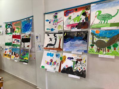 教室には子どもたちが描いた絵や製作した作品がたくさん飾られています。