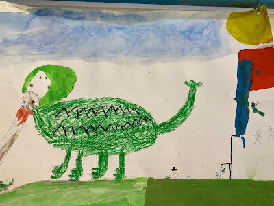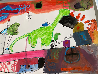 1年生の教室には個性豊かな恐竜の絵が!