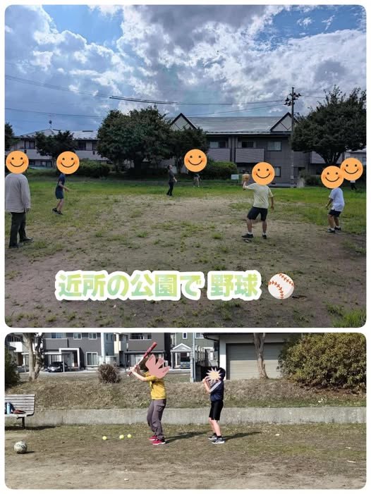 📸写真は、公園でみんなと野球をしているときの様子です。
