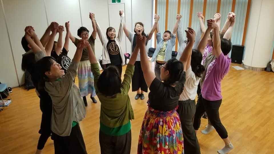 誰かの思いをみんなで分かち合うとき。団子ハグ(みんなで一人の人をハグする、また自分がみんなにハグされる)やみんなで手をつないで大きな輪をつくるとき。