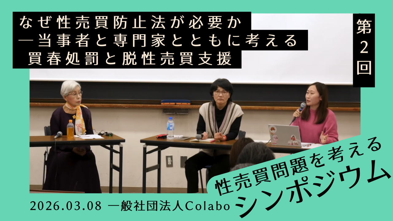 そこで、韓国で性売買防止法の制定に携わり、性売買問題解決のための全国連帯組織で反性売買運動と女性の脱性売買支援を率いてきた研究者で活動家のシンパク・ジニョン氏と、性売買経験当事者で相談員としても活動するムム氏をお招きし、性売買の構造的な搾取の問題解決に必要な法制度や、脱性売買支援について考えました。