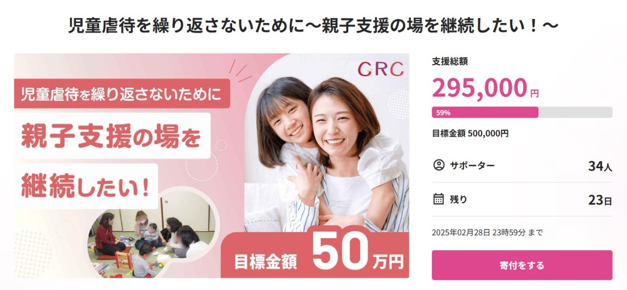 こんにちは、チャイルド・リソース・センター(CRC)です。 12月2日からクラファンに挑戦中ですが、皆様よりたくさんのご支援をいただき、目標額の50%を達成することができました!