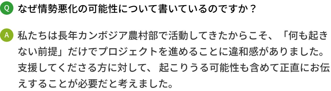 今回の決断には「カンボジアの緊急支援が必要な現状」と「自分自身の生死を別つような体験」という2つの大きな理由があります。