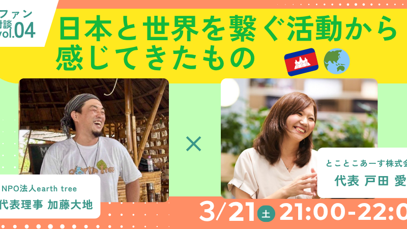 カンボジアから世界へ可能性を広げるearth tree代表かでの対談をどうぞお楽しみに!