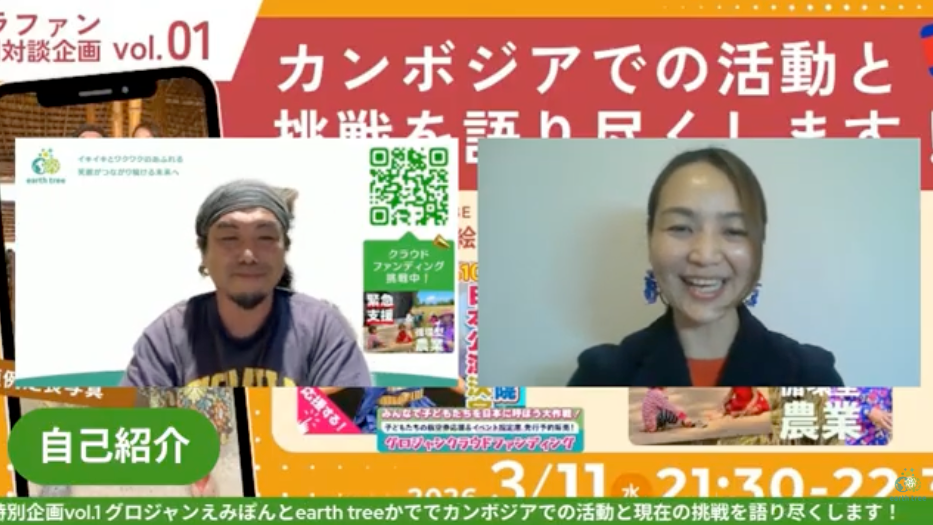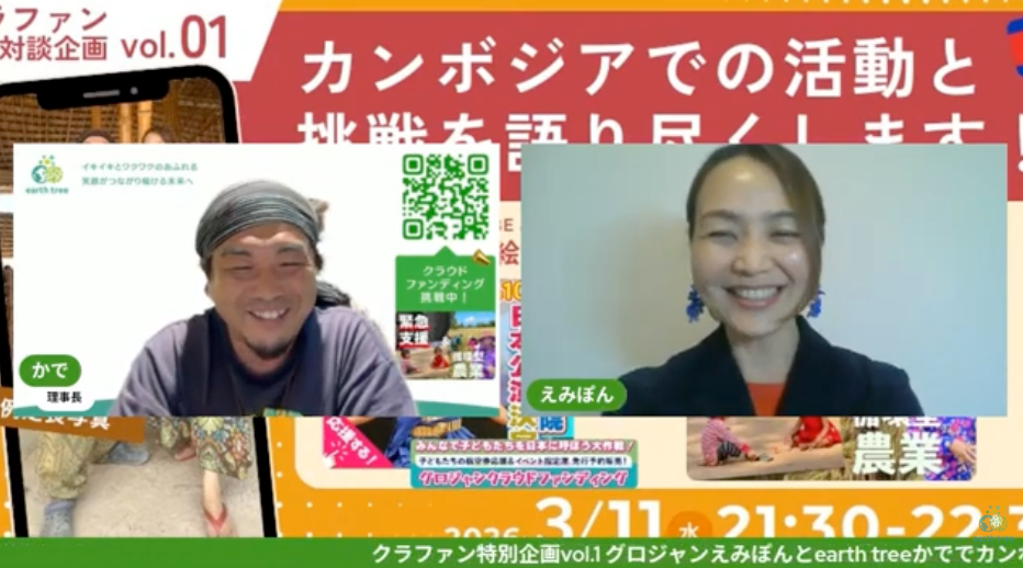 私たちearth treeとグローブジャングルは、長年カンボジアで活動を続けている「大親友」とも呼べる関係です。えみぽんはカンボジアでくっくま孤児院の運営や67校にも及ぶ学校の建設・修繕、女性の就労支援など、多岐にわたる活動をされています。