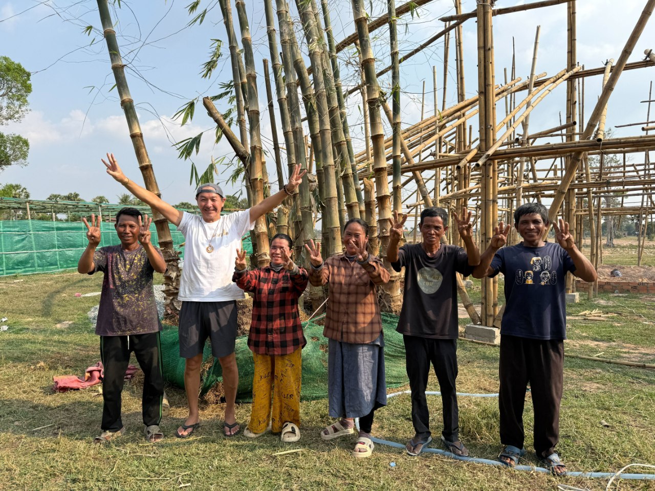 しかし、皆様からの応援と、村の人々の協力のおかげで前に進み続けることができ、現在では村人たち自身が主体となって竹建築を進められるまでに成長しています。