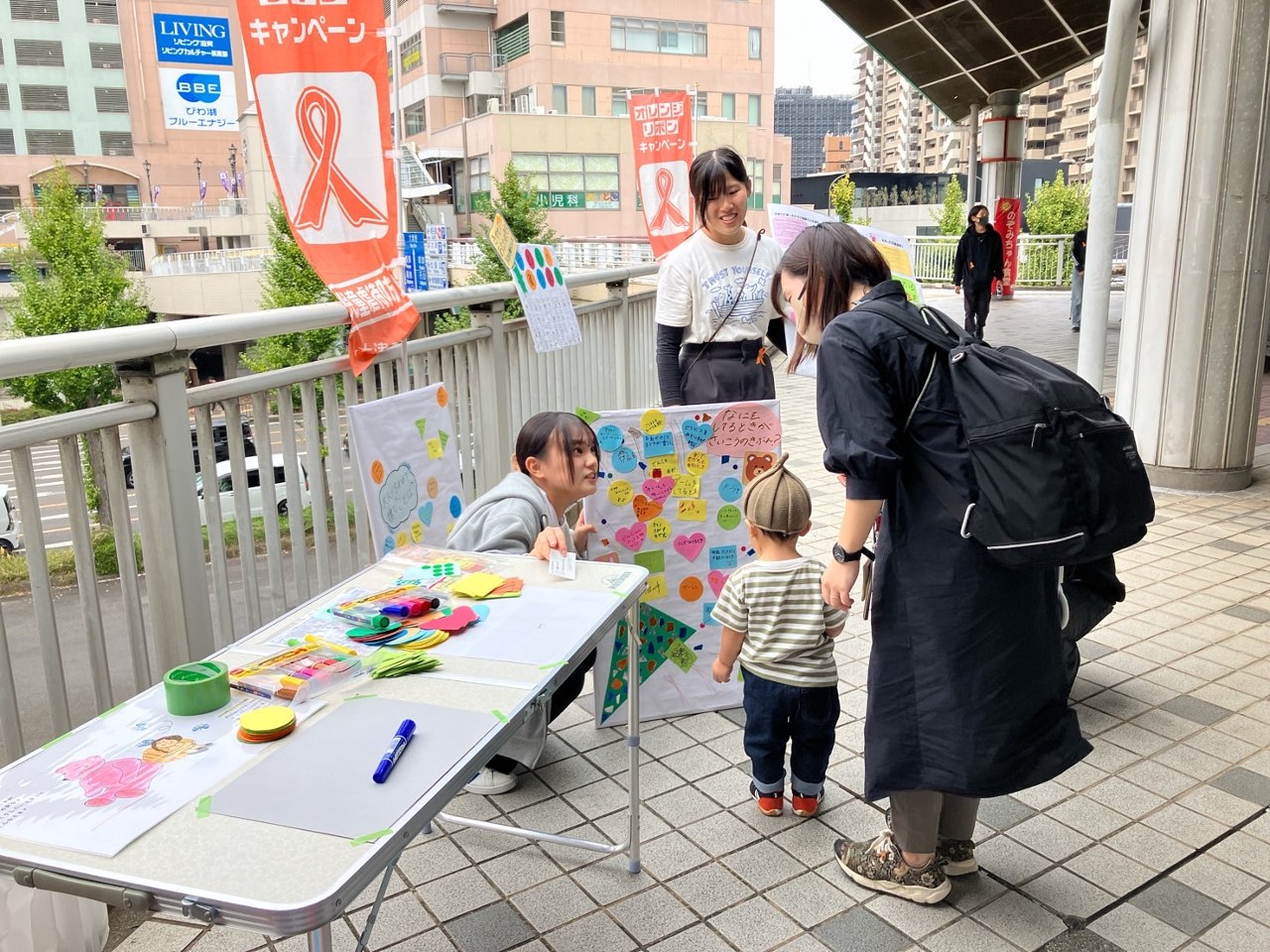 びわこオレンジリボンフェスタでは、オレンジリボンやカードの配布などの受け身的な啓発活動で終わらないように、よりこども虐待を身近に考えてもらうためのプログラムを参加者に提供しました。