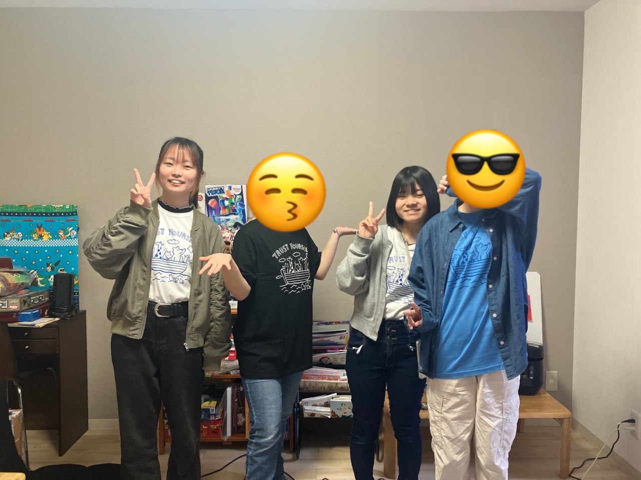 中学生の子は、前日の夜に「明日はみんなお揃いのTシャツをプレゼントするね」と連絡を入れたところ、「やったー」と返事をくれました。普段はあまり文章で感情を表現してくれるタイプではない子なのですが、珍しく気持ちが見える一言。Tシャツを貰えるのはもちろんですが、「お揃い」というのがさらに嬉しかったのではないかと思います。