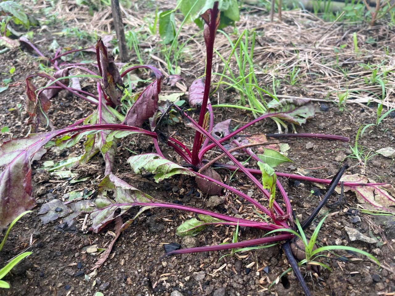 台風前は20品目を超える野菜を植えておりましたが、カブやビーツなどの根菜類は風の力によって抜かれ、葉物野菜は葉がちぎれ、多くの野菜が深刻なダメージを受けてしまいました。