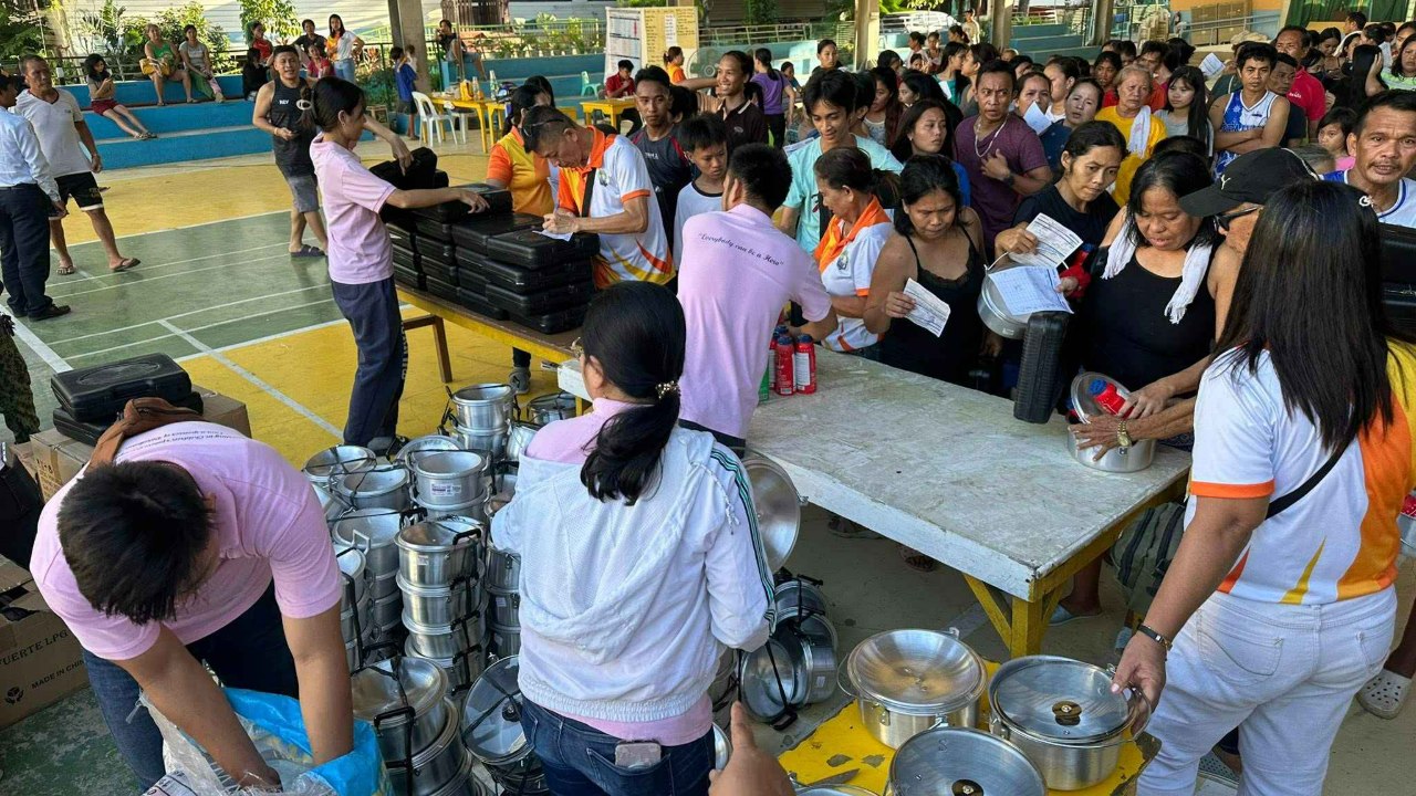 初日は、セブ市タランバン地区の避難所で生活する158世帯へ、卓上コンロ・ガス・鍋を配布。