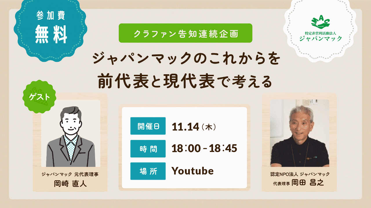 2024-12-05 20:00クラファン告知連続対談企画第2弾の開催レポートです!11月14日、YouTubeにてジャパンマック前代表岡崎氏をお招きし、現代表の岡田とともに「ジャパンマックのこれからを前代表と現代表で考える」をテーマに、ライブ配信をしました!アーカイブも詳細ページからご覧いただます。2024-12-05 20:00クラファン告知連続対談企画第2弾の開催レポートです!11月14日、YouTubeにてジャパンマック前代表岡崎氏をお招きし、現代表の岡田とともに「ジャパンマックのこれからを前代表と現代表で考える」をテーマに、ライブ配信をしました!アーカイブも詳細ページからご覧いただます。