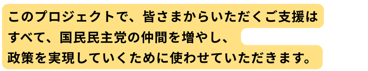 あなたの支援が、国民民主党の力になる。衆院選に100人の候補者を擁立し、もっと政策を実現するための1億円プロジェクト!