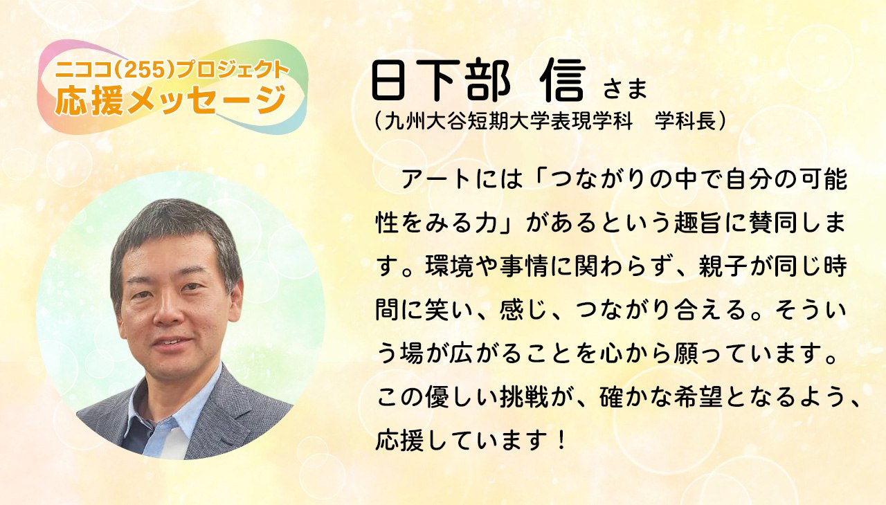 九州大谷短期大学表現学科・学科長の日下部信さまから、ニココプロジェクトへの応援メッセージをいただきました!ありがとうございます!