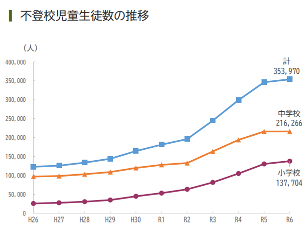 まず、不登校の児童生徒数が過去最多を更新し続けているという現実があります。2024年度、全国の小・中学校における不登校の児童生徒数は35万3,970人に達しました 。これは単なる数字ではありません。35万人を超える子どもたちが、既存の学校システムの中で困難を抱えているという事実を示しています。