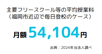 学校以外の学びの場を探そうとした家族が最初に直面するのは、あまりにも高い費用の壁です。私たちが2024年に福岡市近辺で実施した調査では、フリースクール等の月額授業料は平均で5万円を超えていました。これは、年収300万円未満の世帯にとっては、支払いが極めて困難な金額です。