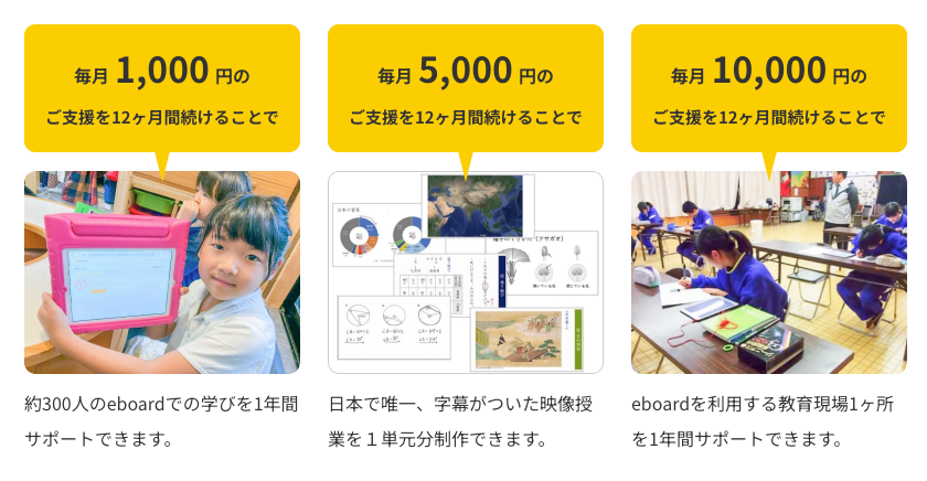 eboardでは、毎月約30万人の子が学んでいます。この次の時代の「学びのセーフティネット」をつくる、支えるために、力を貸してください。