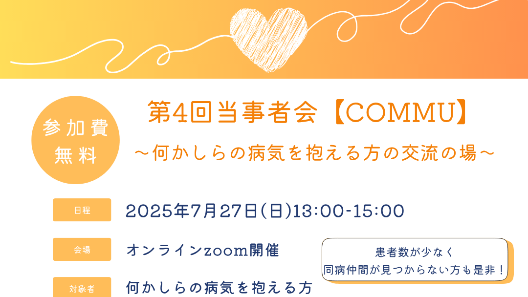 今回は 「患者当事者のみ」 を対象としたオンライン交流会となります。