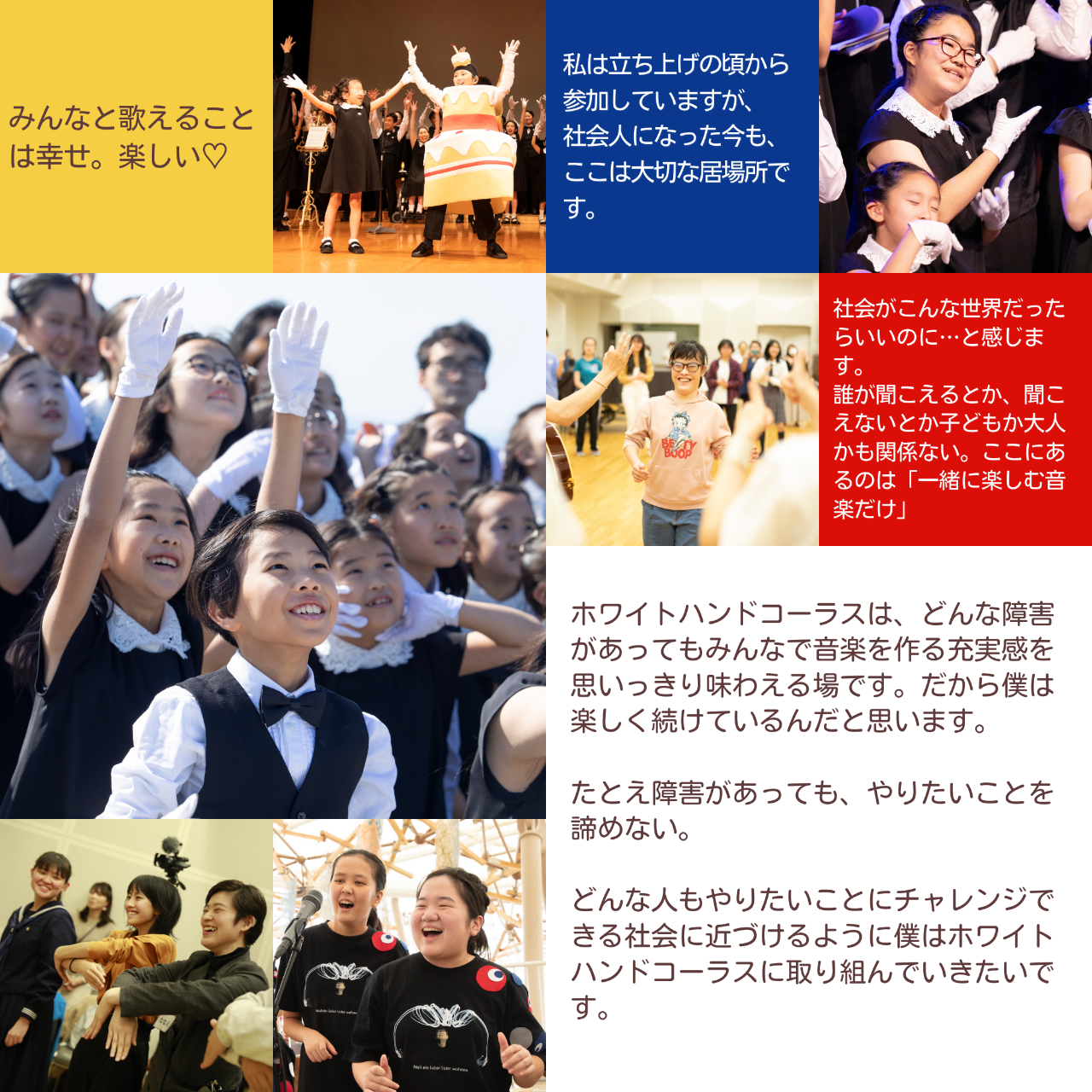 私たちは、チャレンジすることの前に立ちはだかる見えない壁を壊したい。障害の有無や家庭環境に関わらず、誰もが共に歌い、喜び合える場を増やし、子どもたちが “夢を持てる世界” をつくるための挑戦を続けています。