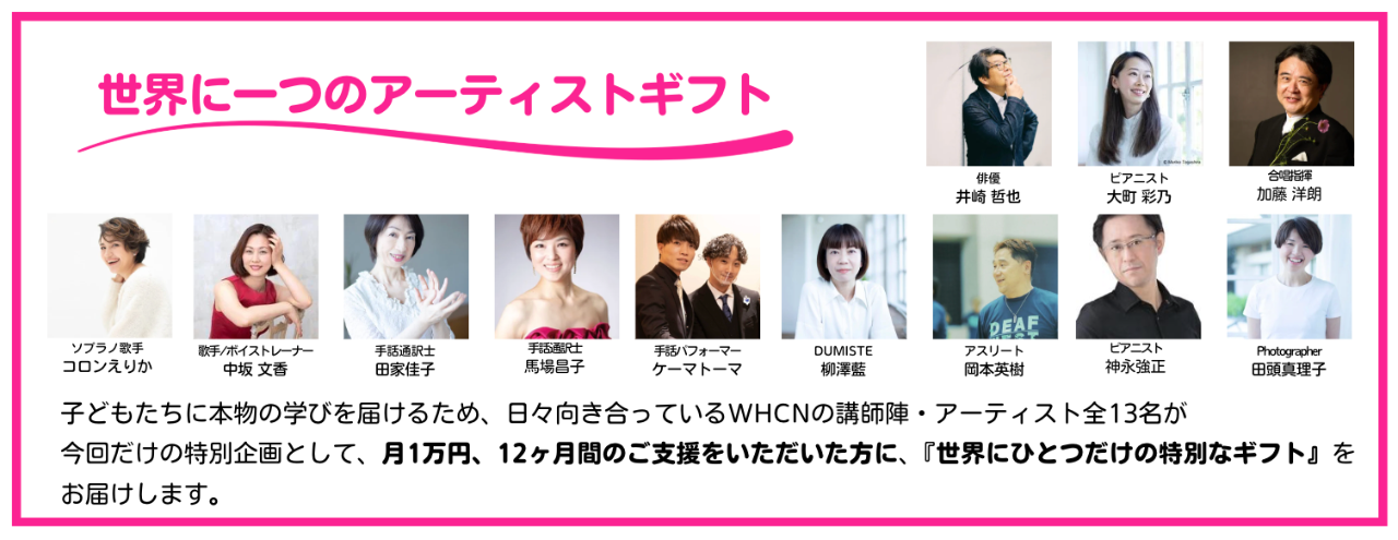 いただいたご支援はすべて、ホワイトハンドコーラスNIPPONの子どもたちの活動に使わせていただきます。