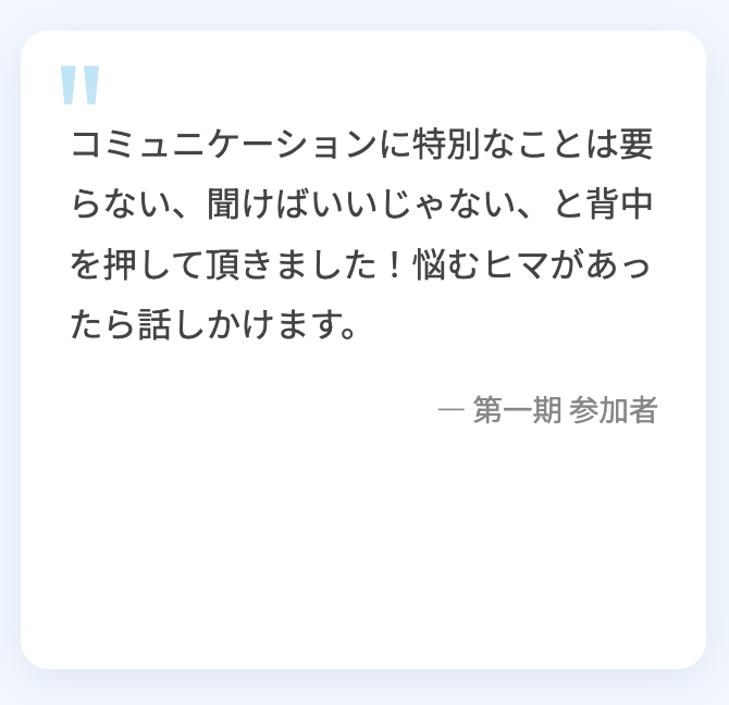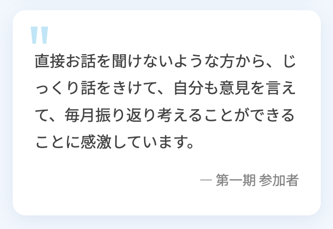 途中からの入室やお子さま同席も大歓迎です。リラックスした形でご参加ください。
