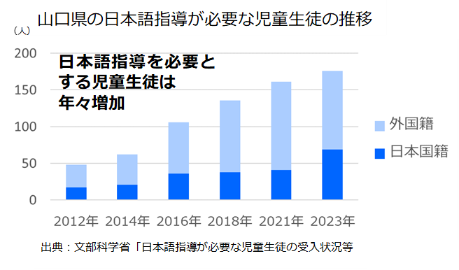山口県は外国人の散在地域であり、外国にルーツをもつ子どもが、学校で1~2名ということもあります。