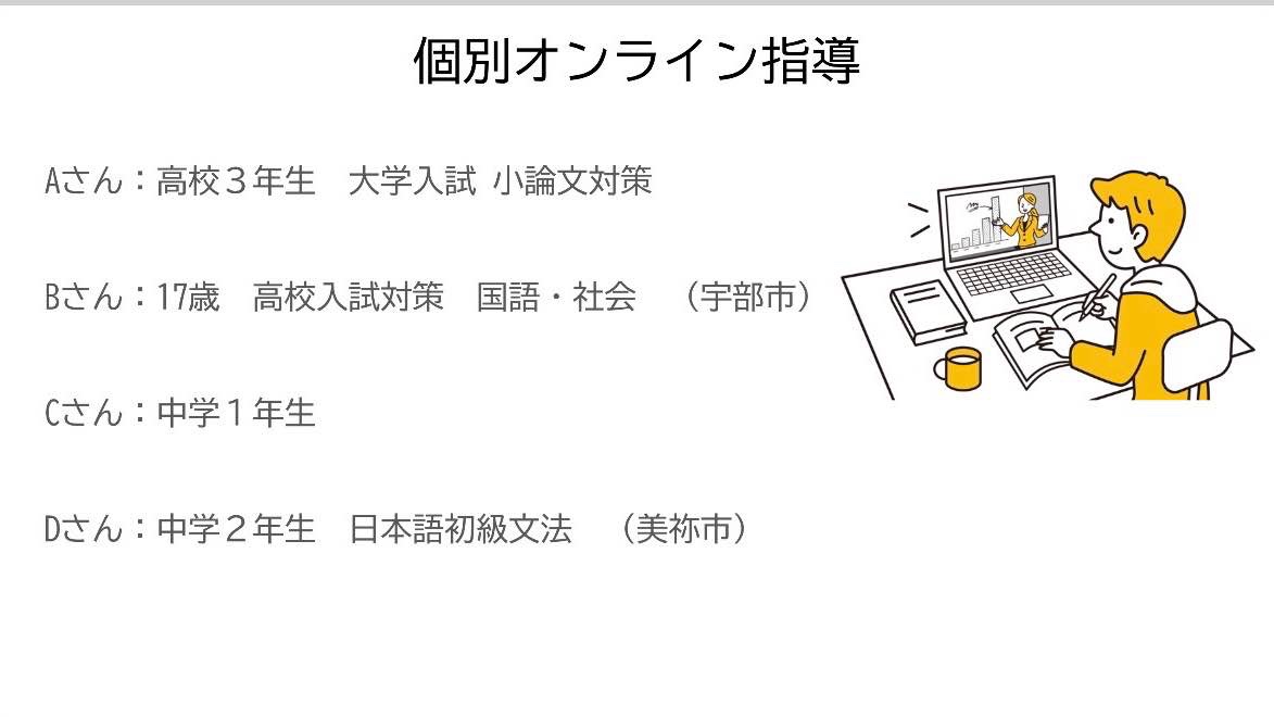 会場に通えない子ども達や山口市外の子ども達に対応していくために、オンライン授業も取り入れています。