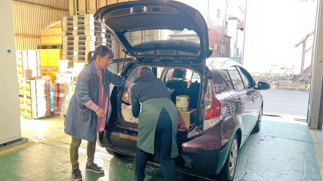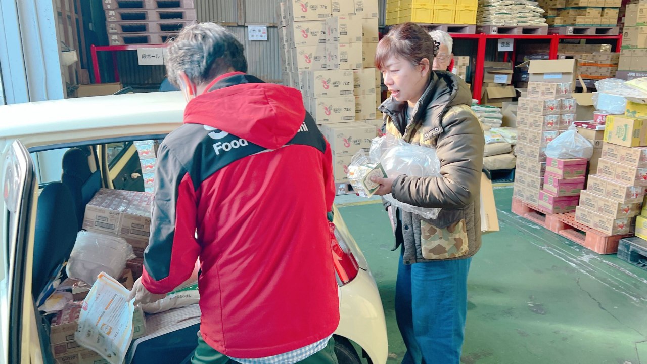 支援団体の食品引き取りの様子