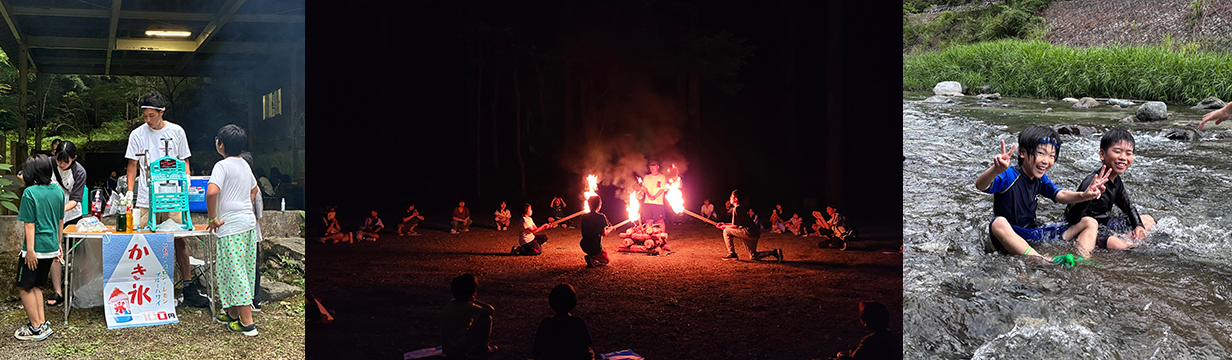 そして今年の夏、そのつながりから生まれたのが「FGC Presents 大熊こぐまキャンプ in 山梨県道志村」です。7月22日からの2泊3日で、子どもたちを関東近郊のキャンプ場に招待し、思い切り遊び、体験してもらうプログラムを実施しました。学童の先生方とも協働し、大熊町にもご後援をいただきました。31名のこどもたちと職員・スタッフを無事に山梨県道志村のキャンプ場「ネイチャーランド オム」に迎え、カレー作りや花火などを行いました。飯盒炊飯にも挑戦し、うまくいった班、うまくいかなかった班もありましたが、みな楽しんでカレーを作り、分け合って美味しく食べていました。大自然の中を元気いっぱいに駆け回る子どもたちの姿に、心から嬉しくなりました。