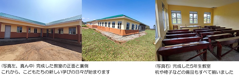 当初わずか2つの教室からスタートした本校ですが、皆さまの継続的なご支援により、生徒の進学に合わせて、毎年1クラスずつ教室を増やすことができ、現在は5つの教室が完成しました。備品の設置も完了し、多くのこども達が快適な環境で学んでいます。