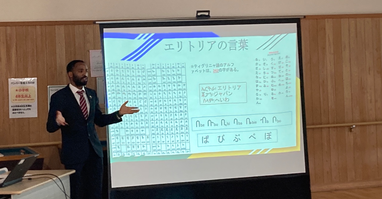 【国内での活動】スポーツ奨学生としてエリトリアより来日し星槎道都大学を卒業後、世界こども財団の職員となったケセテ・ハブテシオンは、これまでも駐日エリトリア国大使館より依頼を受け、都内の小学校で国際理解教育の出張授業を担当してきました。