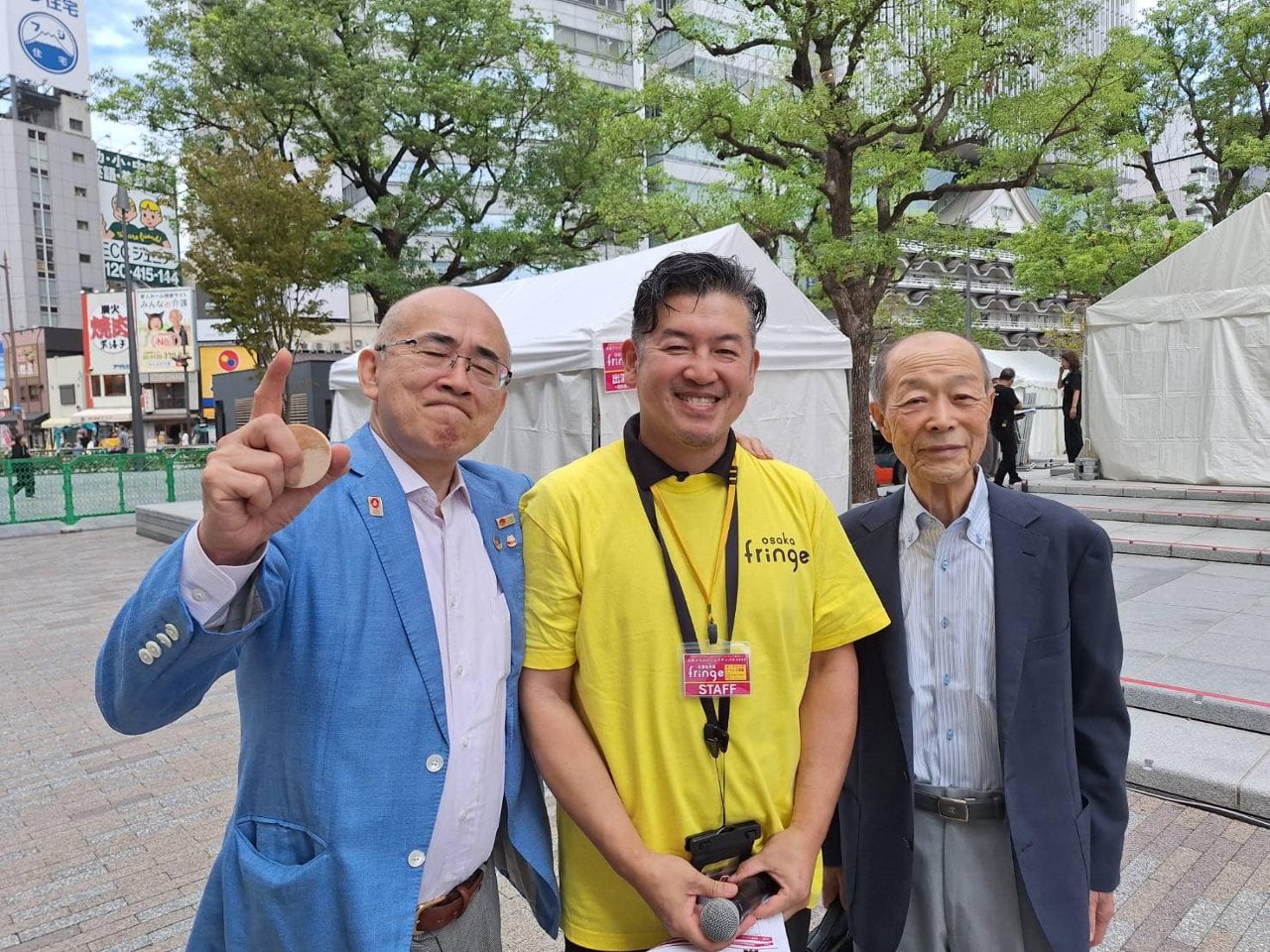 イベントでは名誉アンバサダーの溝畑宏さま(大阪観光局理事長[写真左])と山本雅弘さま(株式会社毎日放送顧問 [写真右])のお二人と本イベントの総監督である中立公平さま[写真真ん中]で写真も撮影しました!