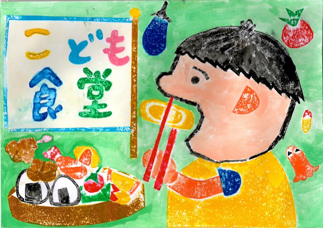 トップページにある子ども食堂の画像ですが、認定NPO法人 全国こども食堂支援センター・むすびえが2021年に開催した全国こども食堂絵画展 ―おしえて!みんなのこども食堂― において、当社団の子ども食堂に遊びに来ていた子供が応募して賞をとった作品です。本人の承諾の元、当社団主催の子ども食堂の看板に使わせていただいております。