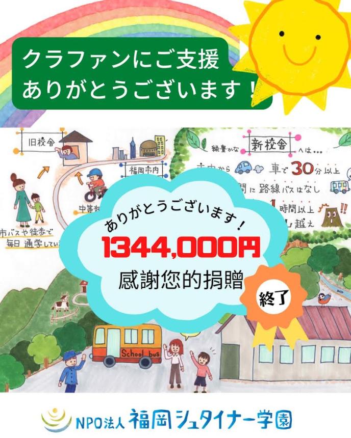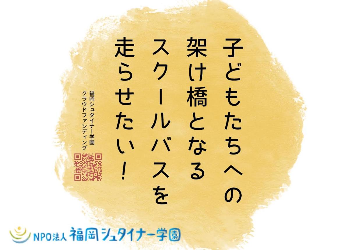 2022-12-24 20:36子どもたちへのスクールバスプレゼントのクラファンをスタートします!!日頃より応援してくださっている皆さま、また初めてシュタイナー学園のことを知ってくださる皆さま。 このページを見てくださりありがとうございます。 本日より、学園の子どもたちの笑顔のため、そして福岡の数少ないオルタナティブスクールとして発展していくため、勇氣を出してクラウドファンディングを実施することにいたしました。 また活動報告やわたしたちのことについて、期間中にお伝えしていきたいと思いますので、クラウドファンディング終了の2/5まで、ぜひあたたかい応援をいただけましたら幸いです。 どうぞよろしくお願いします! 福岡シュタイナー学園 一同2022-12-24 20:36子どもたちへのスクールバスプレゼントのクラファンをスタートします!!日頃より応援してくださっている皆さま、また初めてシュタイナー学園のことを知ってくださる皆さま。 このページを見てくださりありがとうございます。 本日より、学園の子どもたちの笑顔のため、そして福岡の数少ないオルタナティブスクールとして発展していくため、勇氣を出してクラウドファンディングを実施することにいたしました。 また活動報告やわたしたちのことについて、期間中にお伝えしていきたいと思いますので、クラウドファンディング終了の2/5まで、ぜひあたたかい応援をいただけましたら幸いです。 どうぞよろしくお願いします! 福岡シュタイナー学園 一同