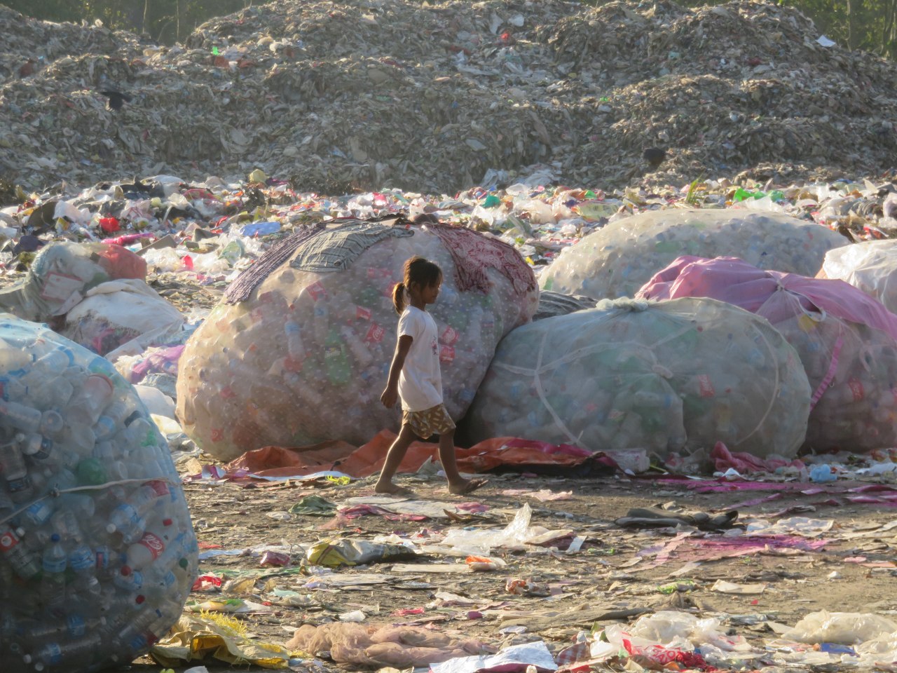 今はお母さんとごみ山でごみの仕分けをしています。