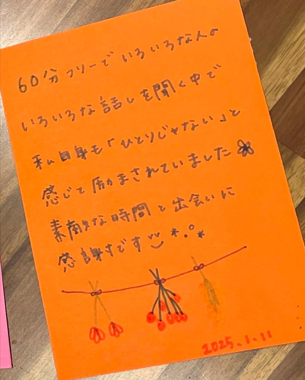 参加者からは「自分だけじゃない」「気持ちが少し楽になった」「心の避難所のような場所」といった感想が寄せられています。