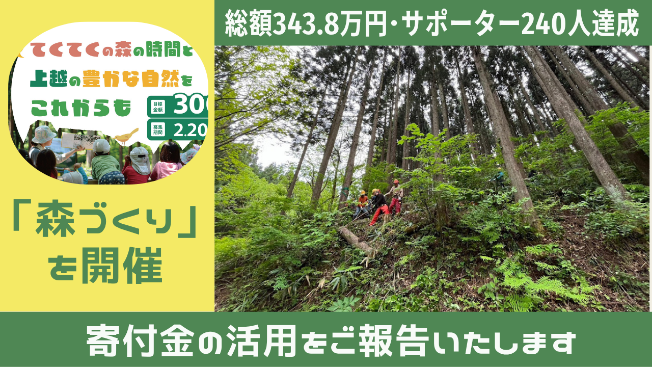 2025-04-22 12:44クラウドファンディング終了しました寄付総額343万8000円、支援者240人という大変大きな成果をいただきました!皆様に心より感謝を申し上げます。2025-04-22 12:44クラウドファンディング終了しました寄付総額343万8000円、支援者240人という大変大きな成果をいただきました!皆様に心より感謝を申し上げます。